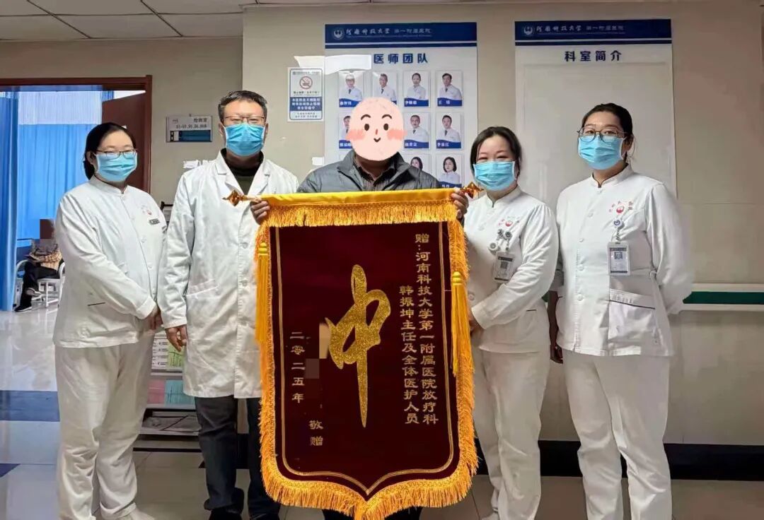 “中!真是太中了!”在河南方言里,一个“中”字,承载着最纯粹的认可与信赖。近日,河南科技大学第一附属医院(以下简称河科大一附院)肿瘤医院(开元院区)肿瘤放疗科副主任医师韩振坤收到了一面特殊的锦旗,锦旗中央一个醒目的“中”字,既是来自80多岁食管癌复发患者朱奶奶(化名)及其家人的由衷赞叹,更是对肿瘤放疗科团队精准医疗、人文关怀的感激。